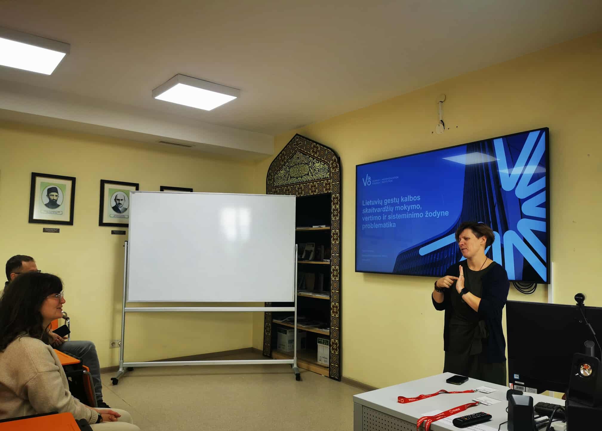On September 26, during the 7th International Linguistics Conference “Languages and People” held at Vilnius University, Nijolė Pivorienė — sign language specialist and lecturer at the Gesture Research Center of Vilnius College — delivered a scientific report prepared in collaboration with the Center’s research team: “Problems of Teaching, Translating, and Systematizing Lithuanian Sign Language Numerals in the LGK Dictionary.”