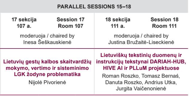 As emphasized by N. Pivorienė in her presentation, the study did not aim to identify or highlight individual errors or inaccuracies. Rather, its primary focus was on exploring the variability in the use of numerals — the reasons for such variation and the methodological approaches required to assist sign language users and interpreters in systematically developing their LGK competencies. The findings also underscored the necessity of presenting numerals in the LGK Dictionary in a systematic and consistent manner. The dictionary serves not only as a primary lexical resource for sign language users, but also as an important instrument reflecting the grammatical subtleties of the language.