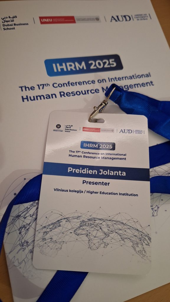 On October 28-30, 2025, Dr. Jolanta Preidienė, Head of the International Relations and Projects Department and VVF lecturer, participated in the 17th International Human Resource Management Conference “Global Cities, the Future of Work, and the Evolving Landscape of International Human Resource Management,” which this year took place at the Dubai University Business School and the American University in Dubai (UAE). Dr. J. Preidienė presented research paper prepared together with colleagues from ISM and VU entitled “From Mobility to Success: How Short-Term International Experiences Shape Academic Careers”.